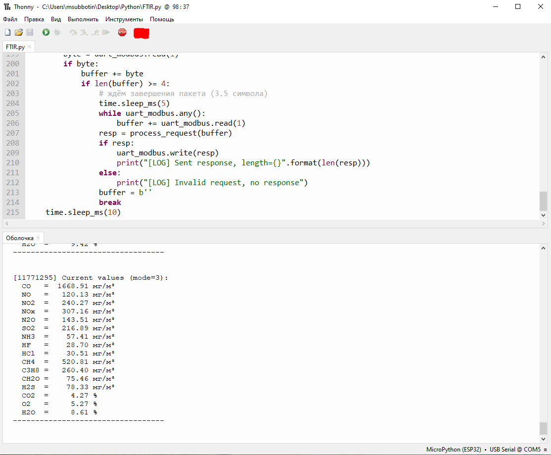 Теперь можно писать код прямо в PuTTY или использовать Thonny (он сам подключается к ESP32).
