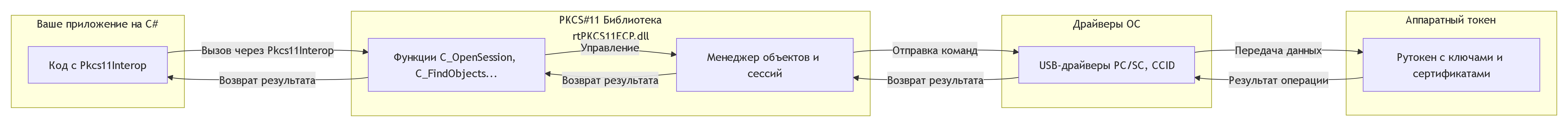 | Pkcs11Interop | Сообщество | Apache 2.0 | Да (через механизмы токена) | Низкоуровневый, полный контроль |